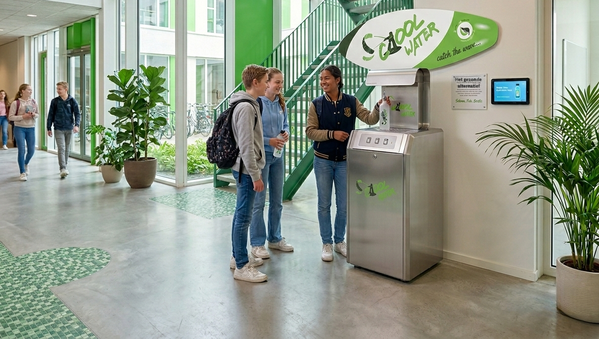 Ons SCOOLWATER-assortiment is daarom speciaal geselecteerd om aan deze eisen te voldoen. Deze koelers bieden een hoge piekcapaciteit, leveren snel en efficiënt water, zijn robuust en betrouwbaar, en bidons en waterflessen passen er perfect onder. De Dopper-tap heeft zelfs een communicatiebord dat direct motiverende berichten uitzendt, waardoor water drinken nog leuker en aansprekender wordt. Ook hebben wij de Quickly Cupwasher in ons assortiment. Dit is een compacte oplossing die ideaal is voor in de lerarenkamer of de schoolgangen, waarmee binnen 30 seconden bidons of mokken hygiënisch gereinigd kunnen worden.